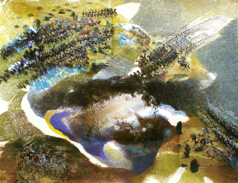 Bild 3 aus dem Zyklus "Letzte Ressourcen", 2015, Pastell/Fotocollage/Papier, 98x128 cm | ||